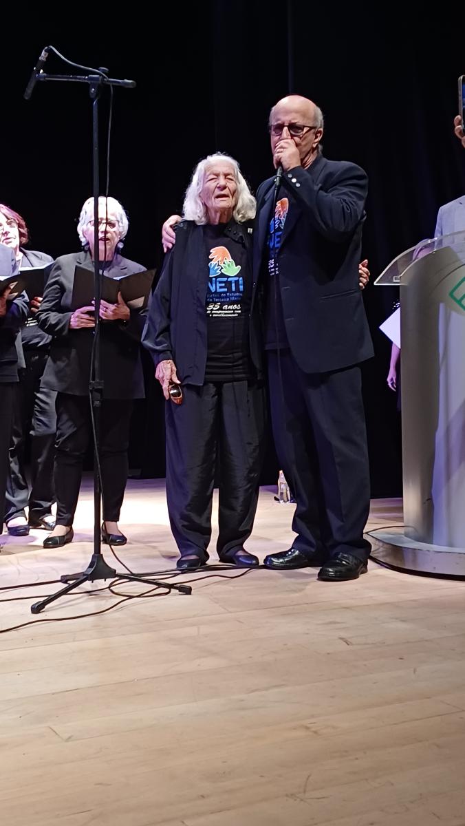 Um dos pontos do evento foi a homenagem à Sra. Rita Maria da Silva, presidente da Associação de Pensionistas do IPREV (APIPREV). Aos 90 anos de idade, Rita segue à frente da Associação há 23 anos, conduzindo um espaço acolhedor que promove a socialização e o bem-estar das pensionistas, por meio de atividades como cafés, viagens, aulas de dança e eventos culturais. Sua trajetória é um verdadeiro exemplo de vitalidade, dedicação e amor à comunidade.