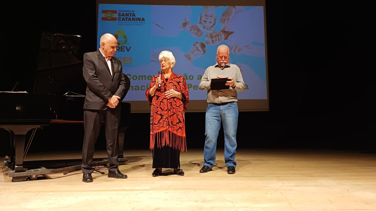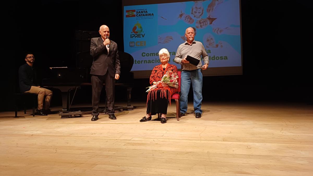 O evento contou com o pronunciamento do Presidente do Conselho Estadual da Pessoa Idosa, Fábio Mattos, do Deputado Estadual Junior Cardoso, membro da Comissão dos Direitos da Pessoa Idosa na ALESC, do Presidente do Instituto de Previdência do Estado de Santa Catarina, Mauro de Oliveira, e da Secretária de Estado Adjunta da Assistência Social, Mulher e Família, Milena Lopes.