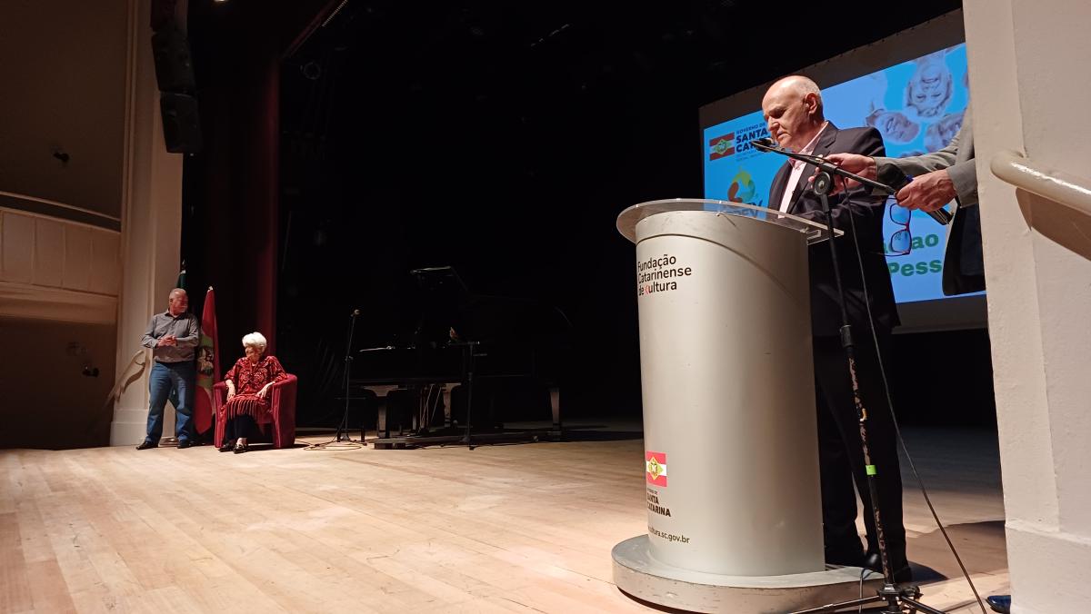 O evento contou com o pronunciamento do Presidente do Conselho Estadual da Pessoa Idosa, Fábio Mattos, do Deputado Estadual Junior Cardoso, membro da Comissão dos Direitos da Pessoa Idosa na ALESC, do Presidente do Instituto de Previdência do Estado de Santa Catarina, Mauro de Oliveira, e da Secretária de Estado Adjunta da Assistência Social, Mulher e Família, Milena Lopes.